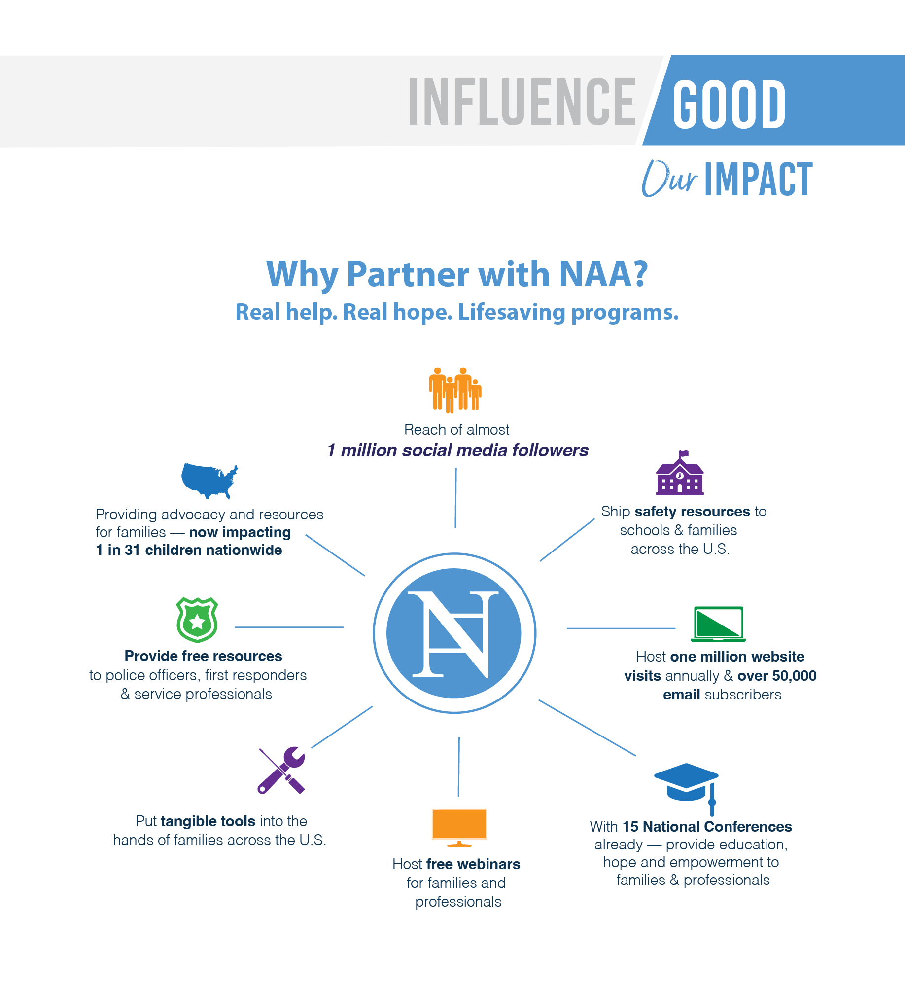 - NAA seeks to partner with companies that have a sincere commitment and desire to support families affected by autism through our programs. Reach out for customizable tiered sponsorship/partnership options.